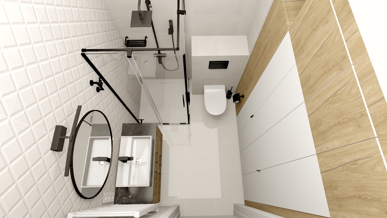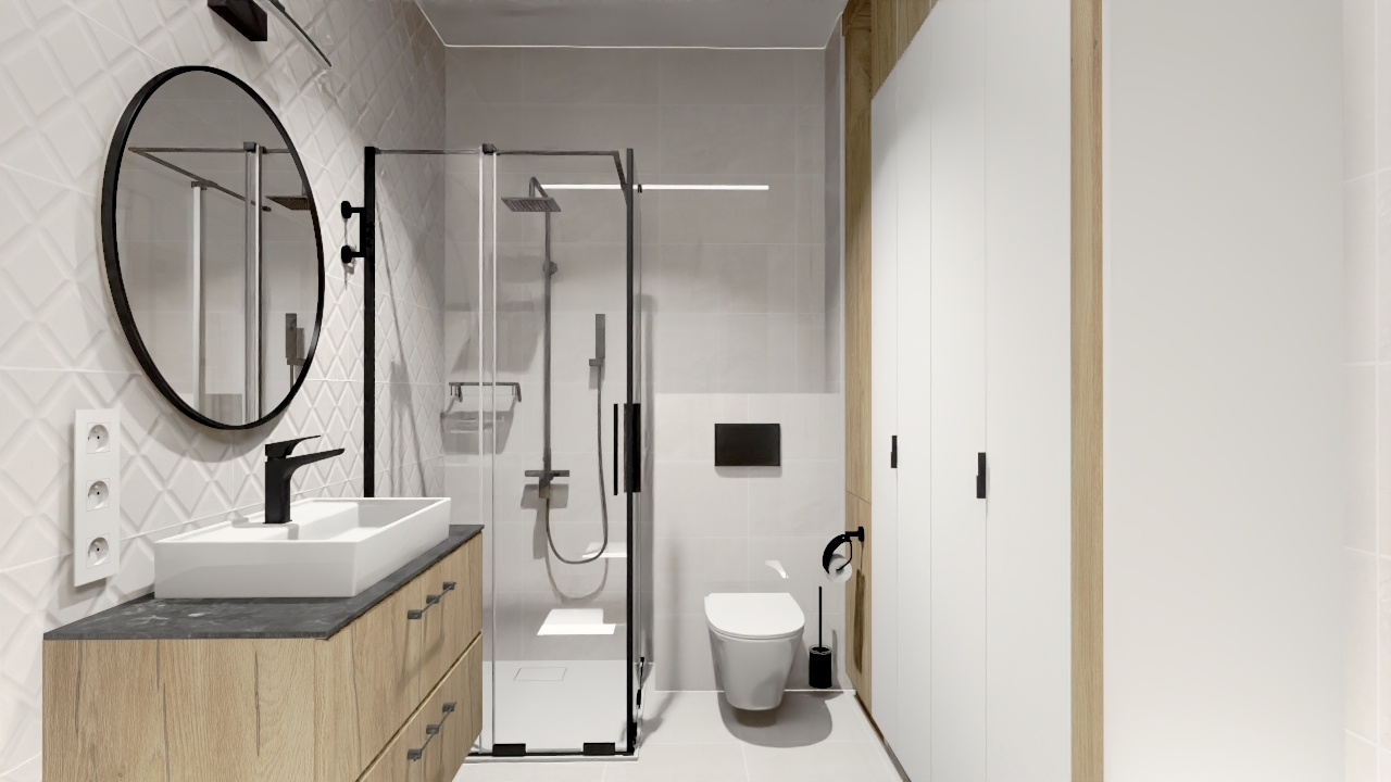 - Łazienka została zaprojektowana z myślą o wygodzie i ponadczasowej elegancji, z użyciem materiałów najwyższej jakości.