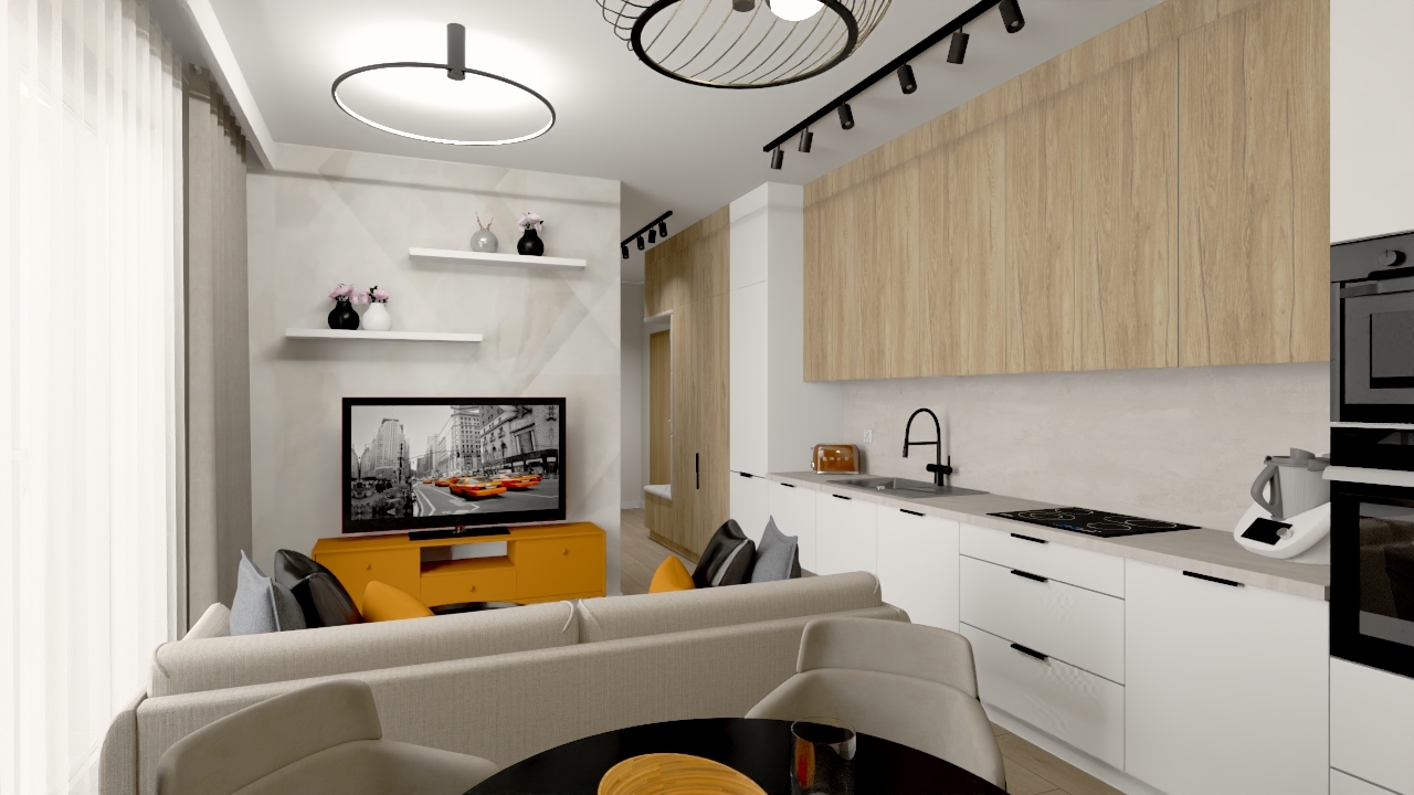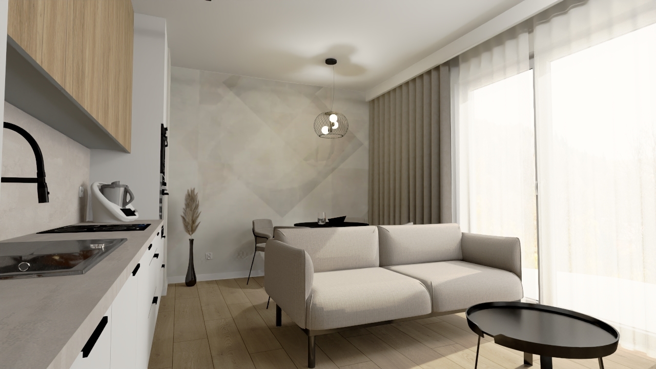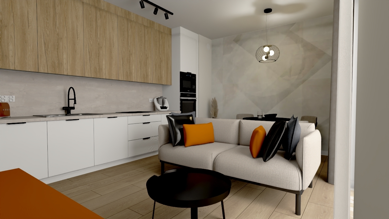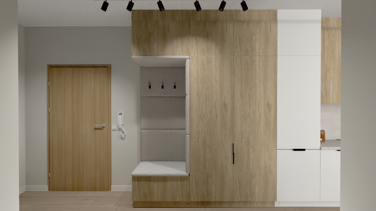 To mieszkanie to połączenie nowoczesności i funkcjonalności na najwyższym poziomie. Przemyślany układ wnętrz oraz harmonijna kolorystyka sprawiają, że przestrzeń jest nie tylko estetyczna, ale także komfortowa.