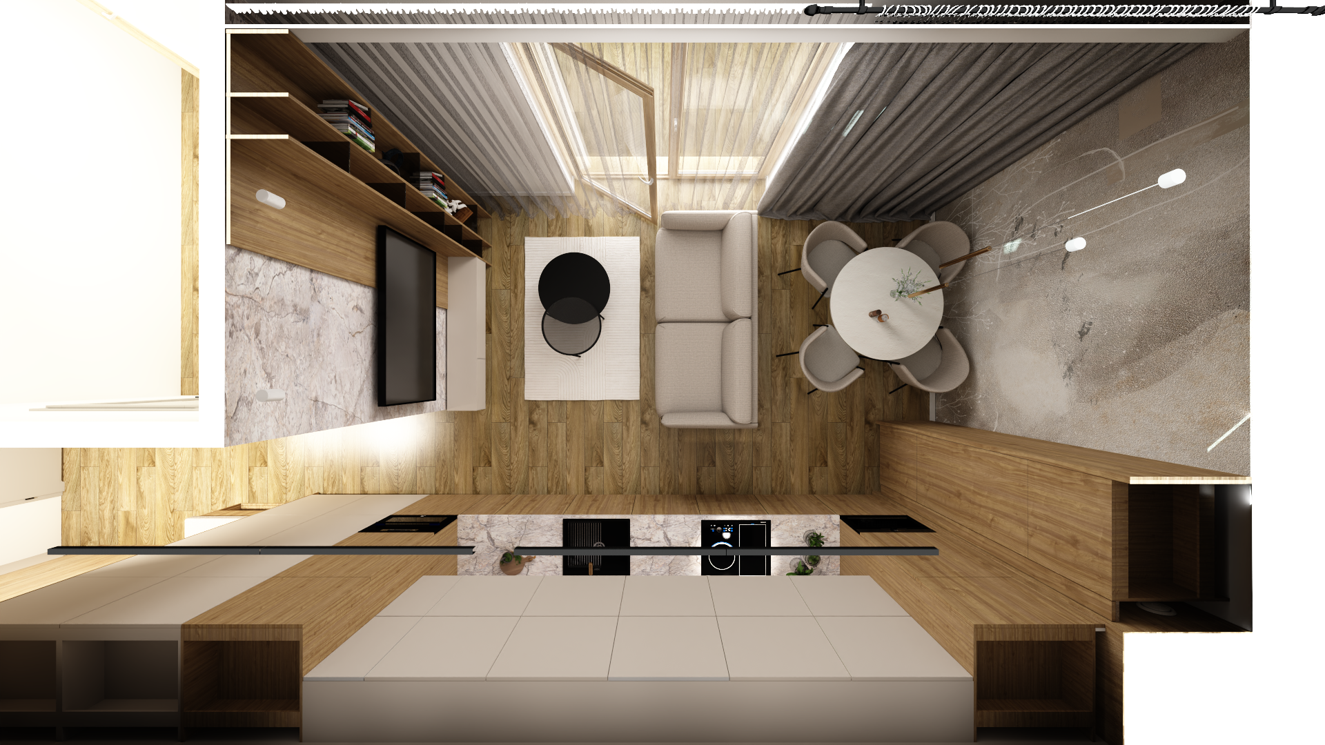 Każdy element wnętrza został zaprojektowany tak, aby tworzyć spójną i estetyczną całość. To przestrzeń, w której styl spotyka się z praktycznością.