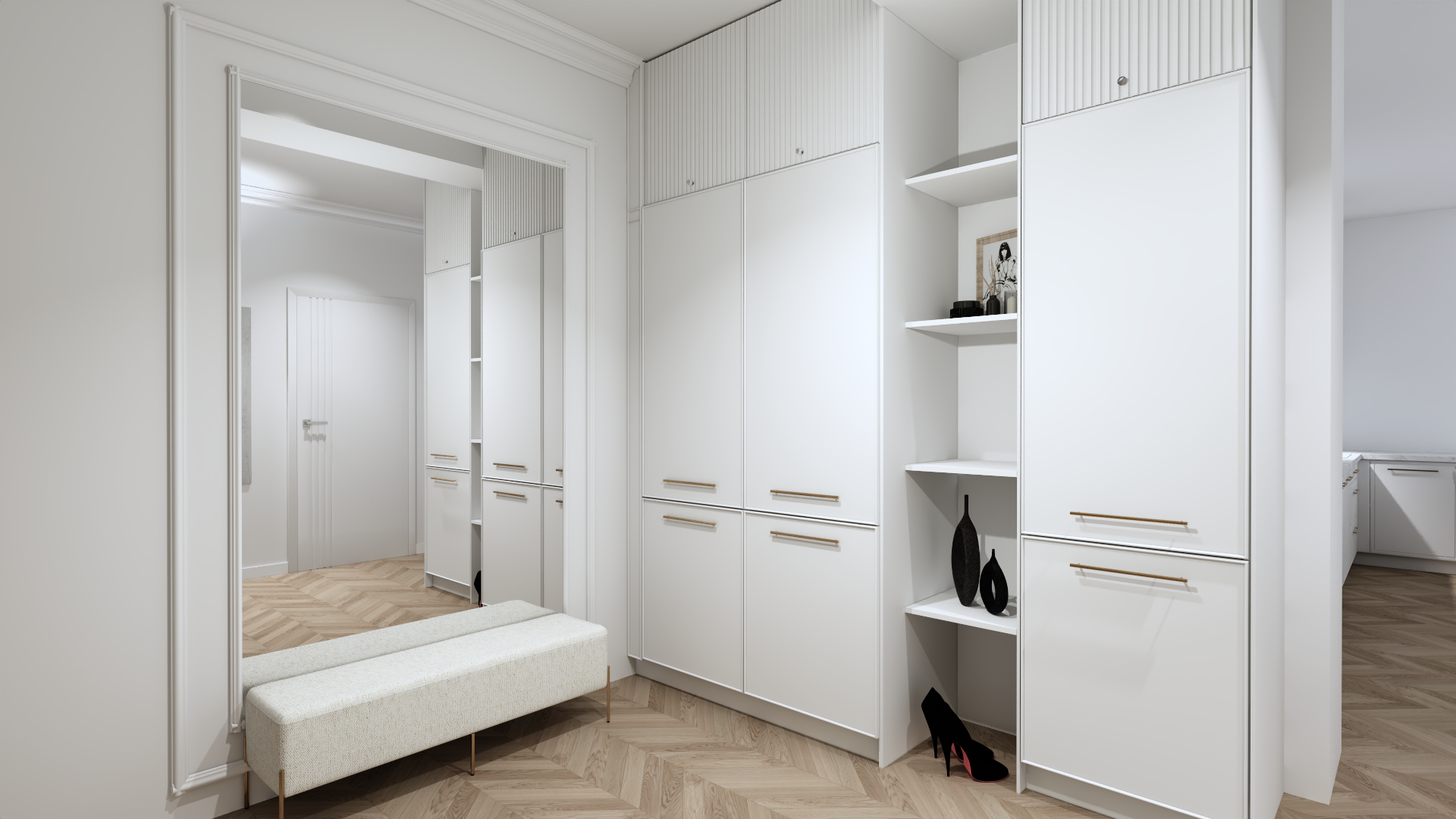 - Przestronny przedpokój – praktyczny układ zapewniający wygodne przechowywanie.
